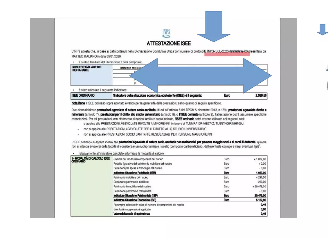 Per sapere se si è percettori del beneficio è sufficiente verificare se nell’elenco allegato è indicato il proprio codice di protocollo DSU ISEE. Si tratta del codice alfanumerico presente in alto a destra nell'Attestazione ISEE riferita all'anno in cui è stata presentata. Ha questo formato: “INPS-ISEE-2024- XXXXXXXXX-00”, dove al posto delle “X” vi sono 9 numeri o lettere.