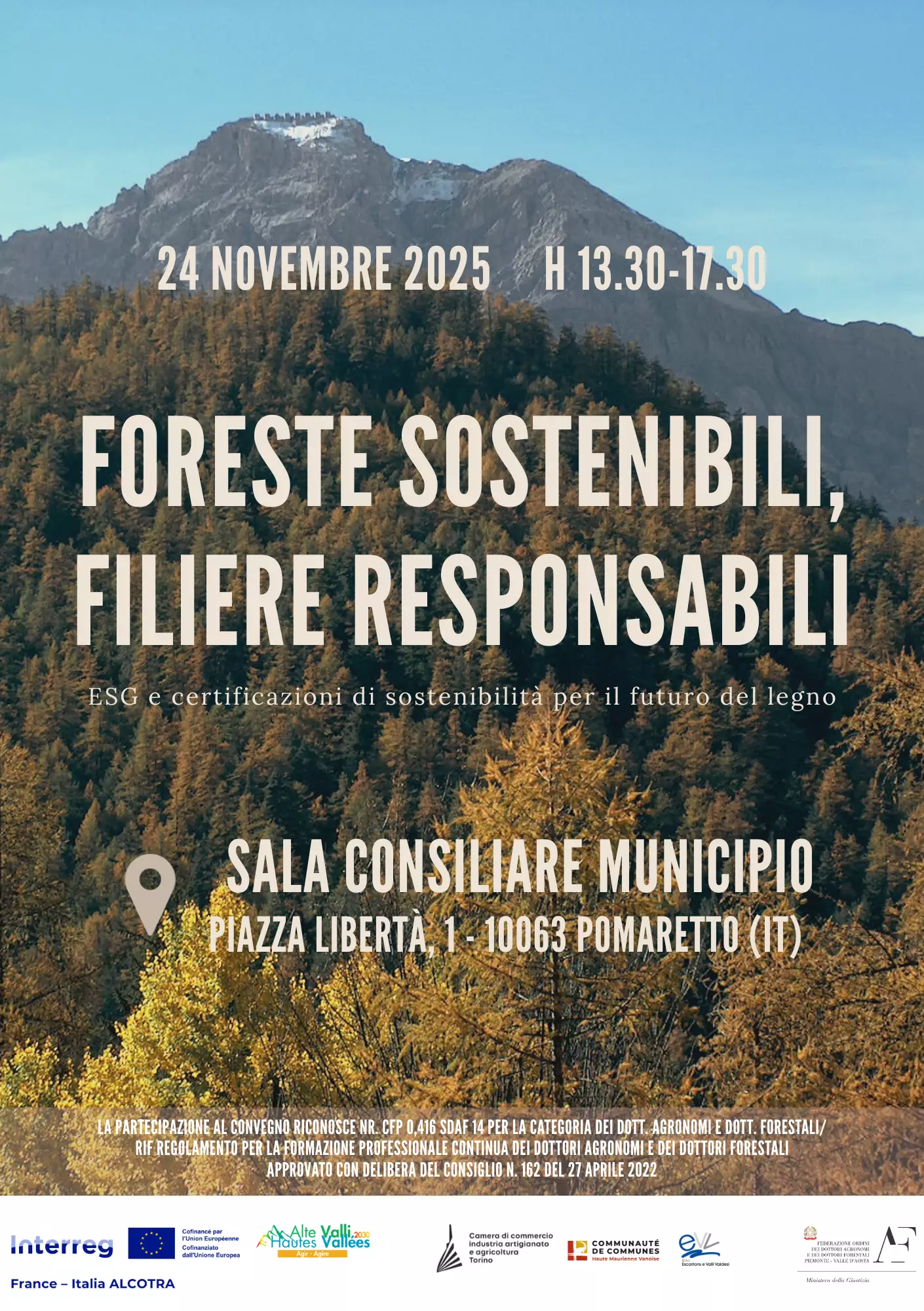 Una giornata transfrontaliera gratuita dedicata alla sostenibilità nel settore della filiera del legno, che si terrà il 24 novembre dalle 13.30 alle 17.30 presso la Sala Consiglio di Pomaretto.