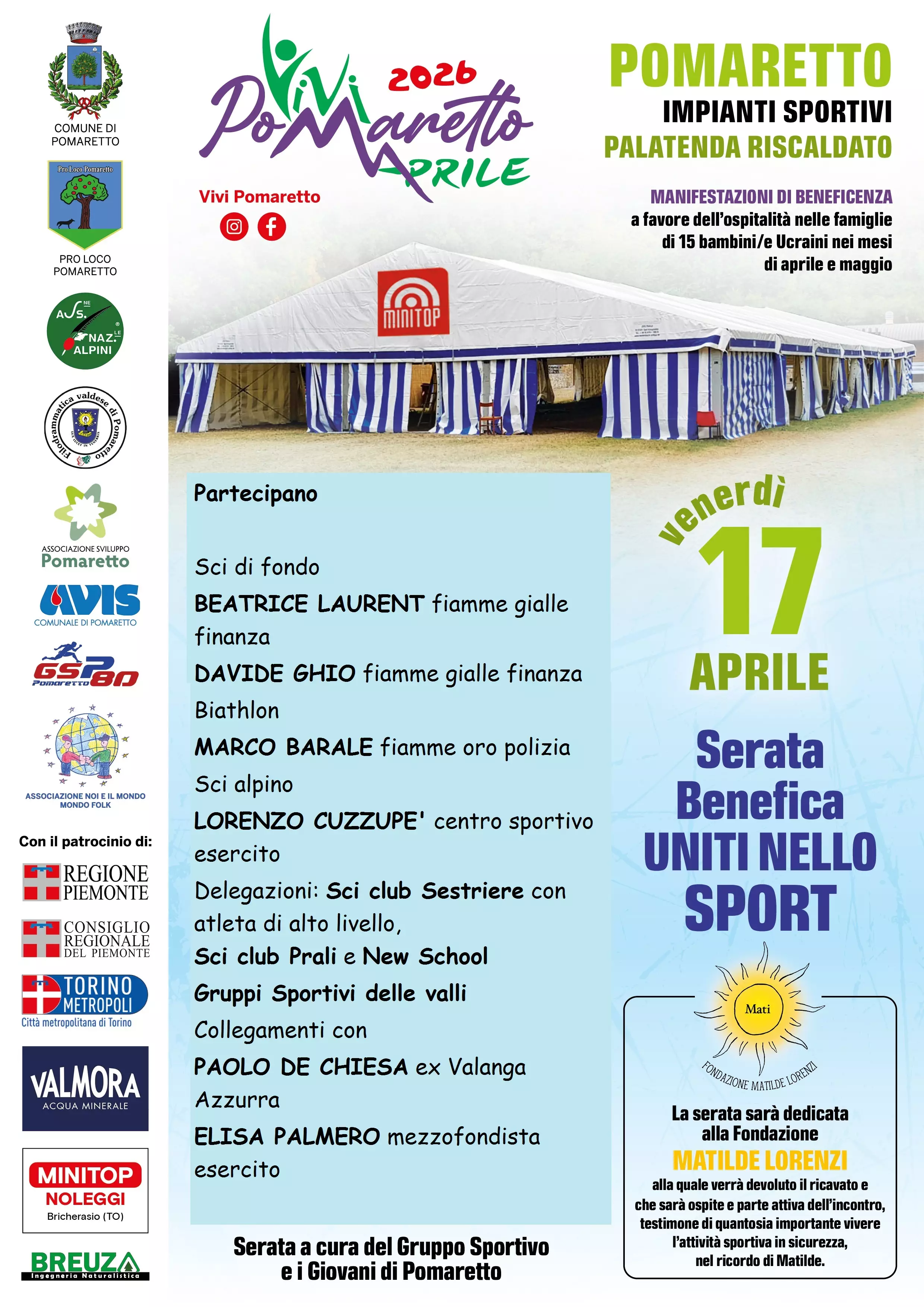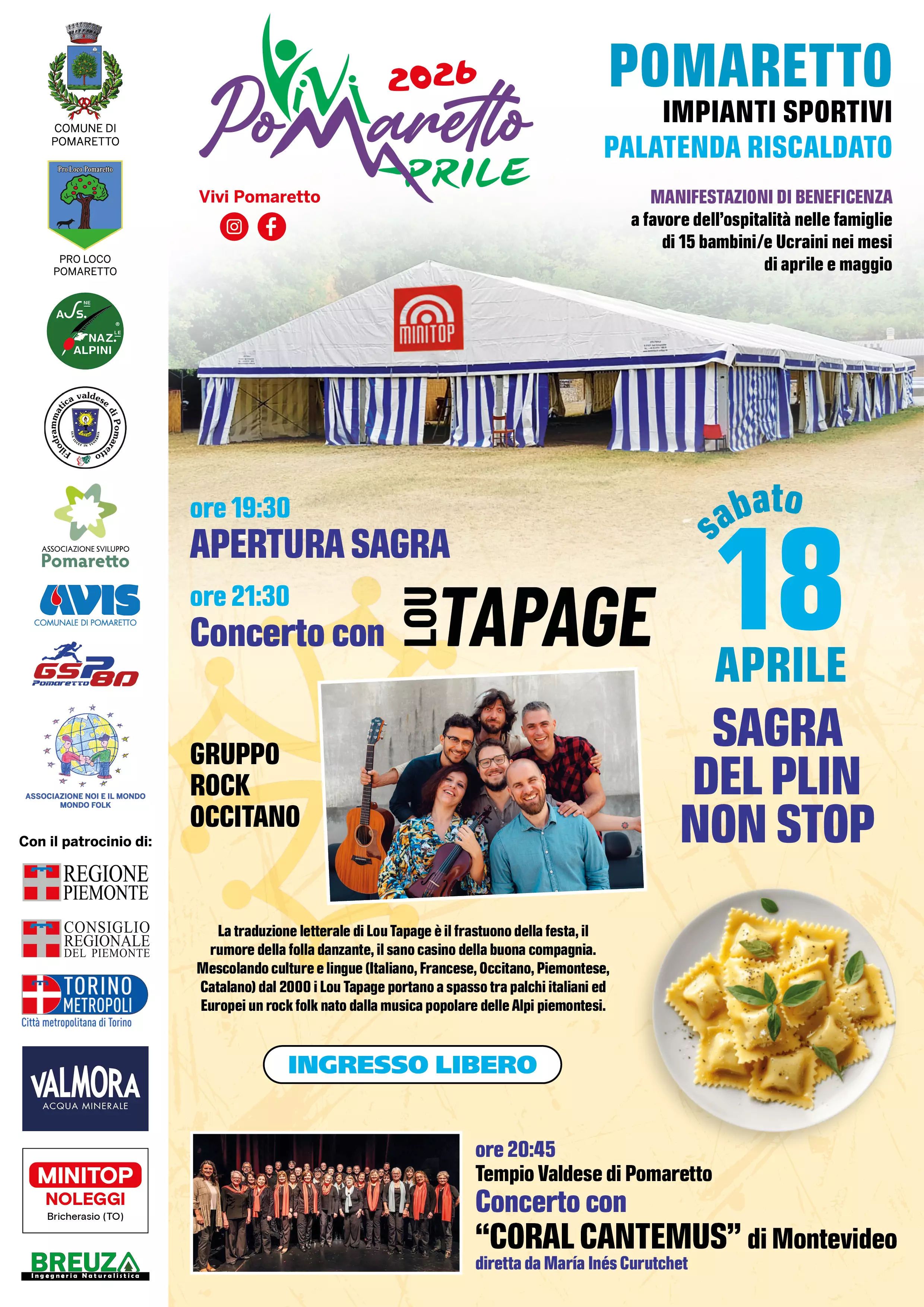 MERCOLEDÌ 15 APRILE 2026 Palatenda di "Vivi Aprile" – Pomaretto