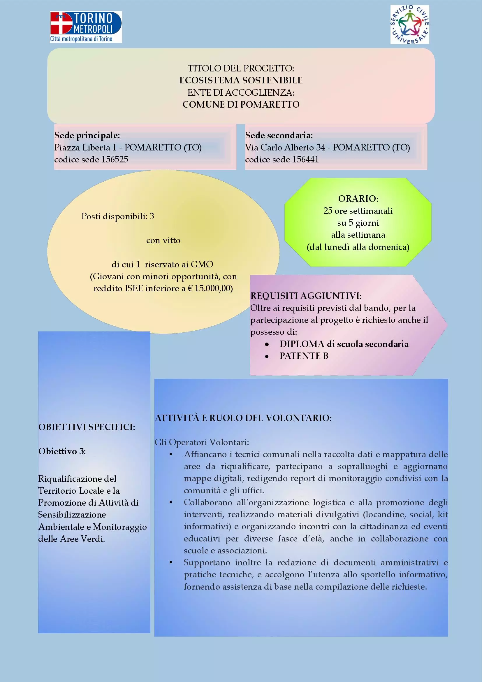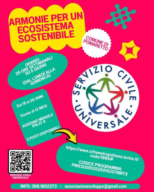 E’ stato approvato e finanziato il Progetto presentato dal Comune di Pomaretto per avere 2 VOLONTARI del Servizio Civile Nazionale Universale.