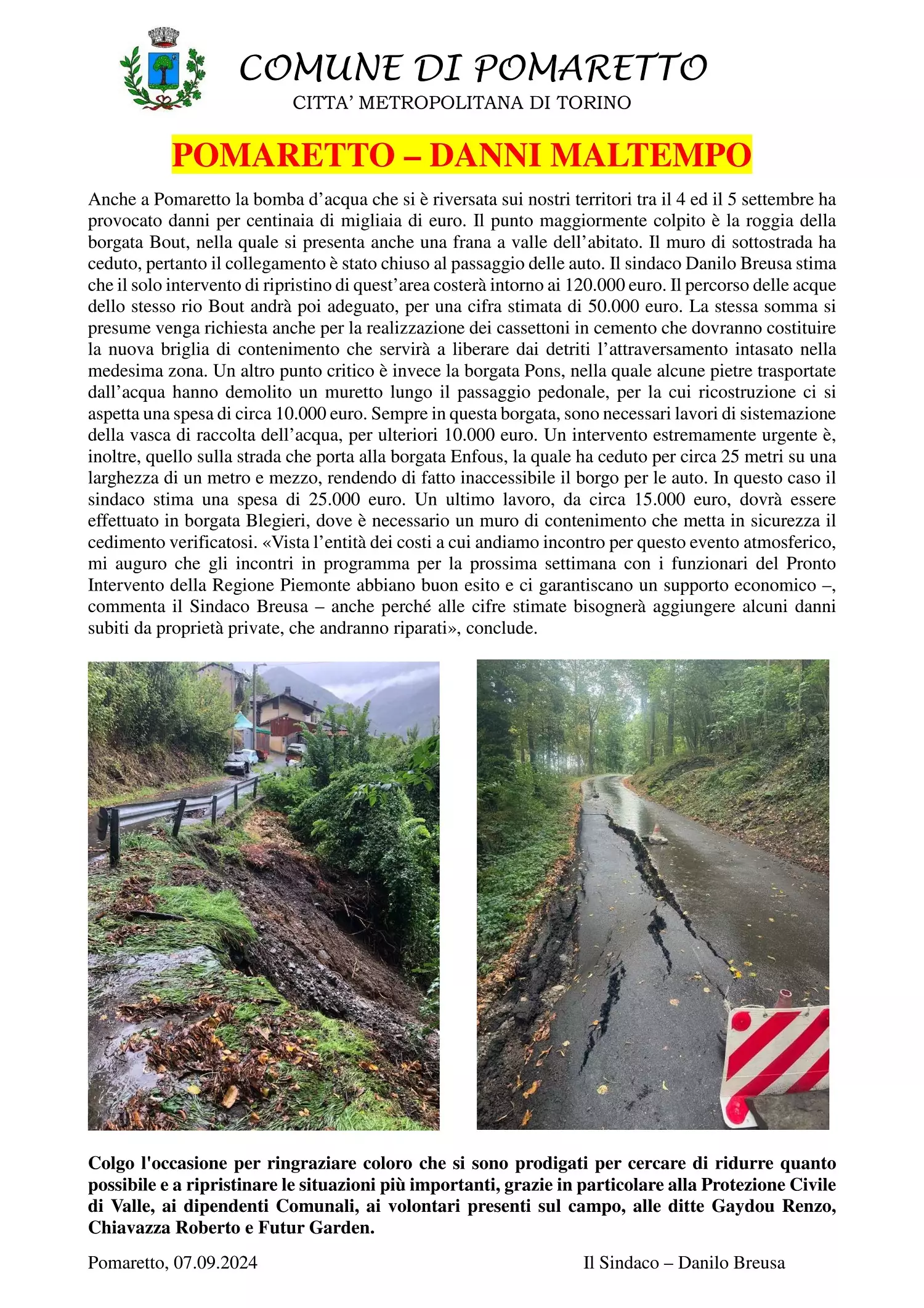 Pomaretto, 07.09.2024 Il Sindaco – Danilo Breusa