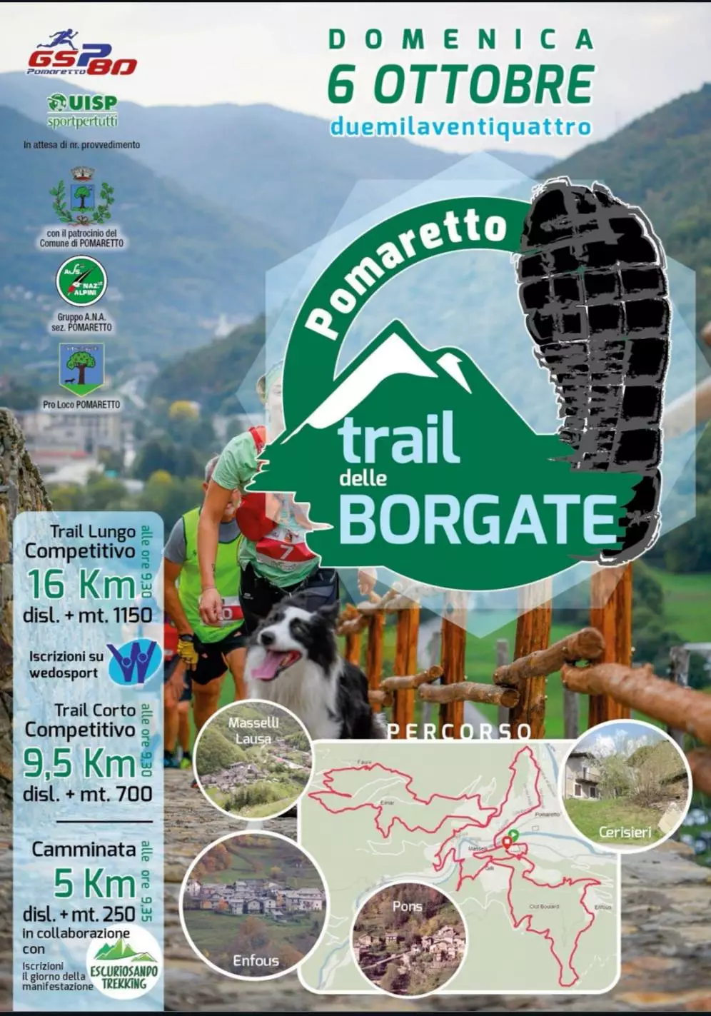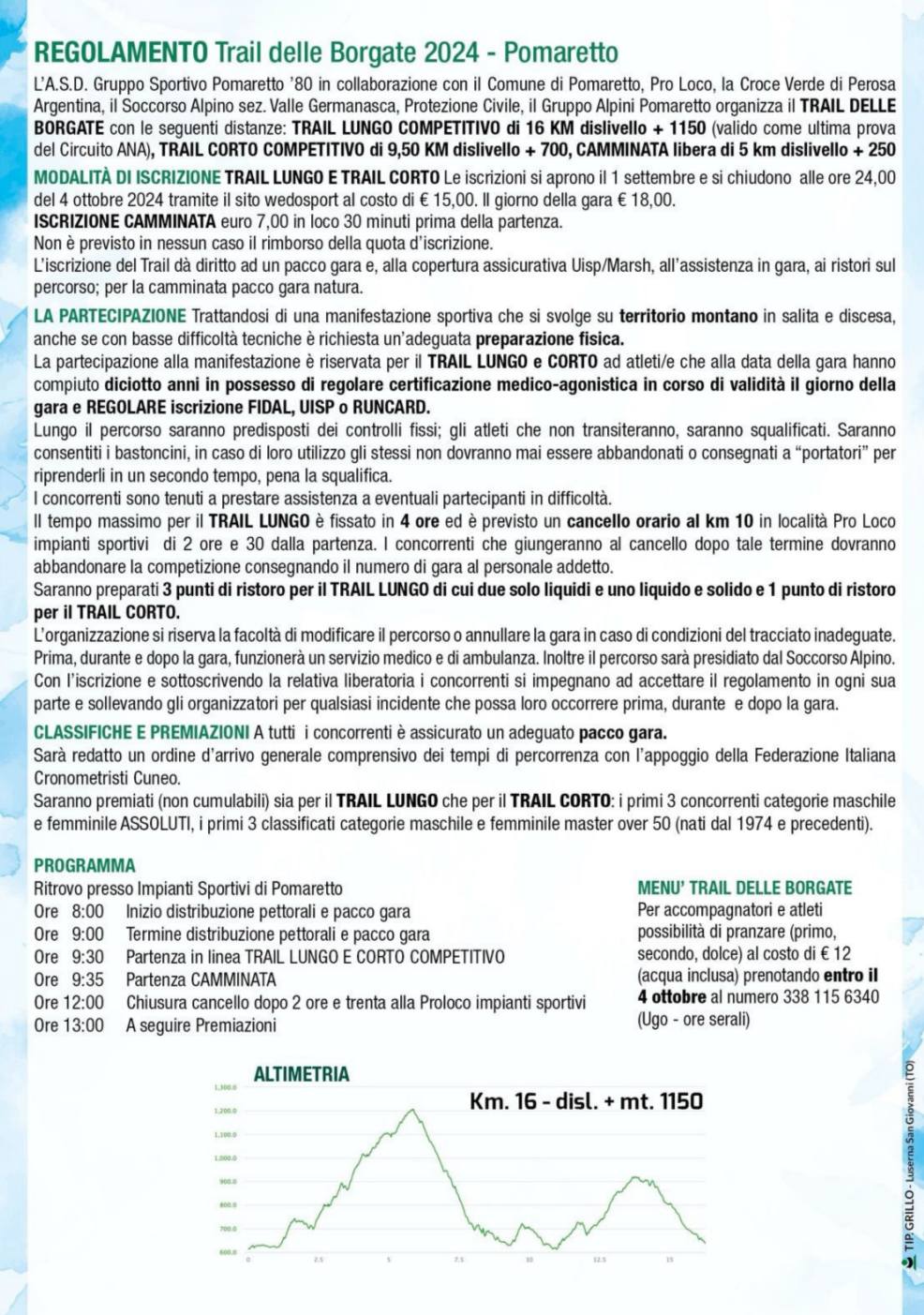Descrizione GSP '80 organizza domenica 06 Ottobre 2024 il trail delle Borgate a Pomaretto Chiusura iscrizioni 04/10/24