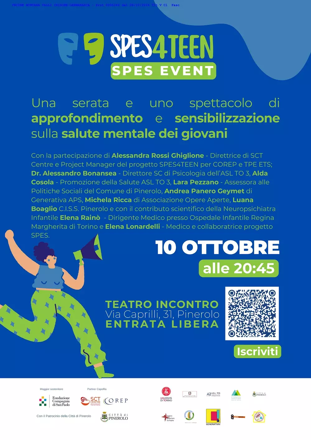 Descrizione Il 10 ottobre presso il Teatro Incontro di Pinerolo (Via Caprilli, 31) un evento speciale dedicato al benessere degli adolescenti.