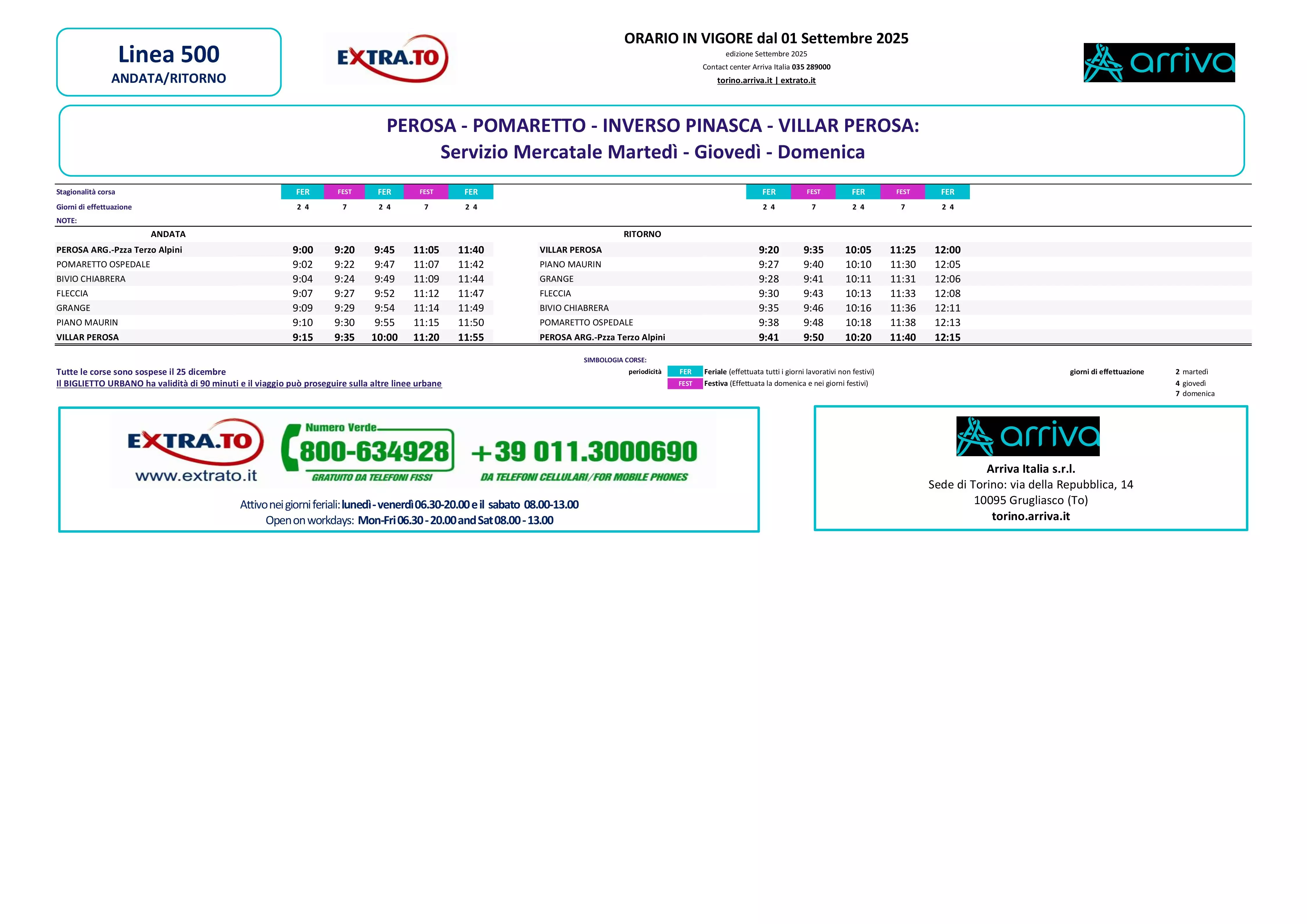 Le Amministrazioni Comunali di Pomaretto e Inverso Pinasca informano che dal 20 gennaio 2025 sarà attivo il potenziamento/modifica della linea 500 di Arriva, con una prova sperimentale di 6 mesi per verificare i dati di utilizzo del servizio da parte degli utenti.