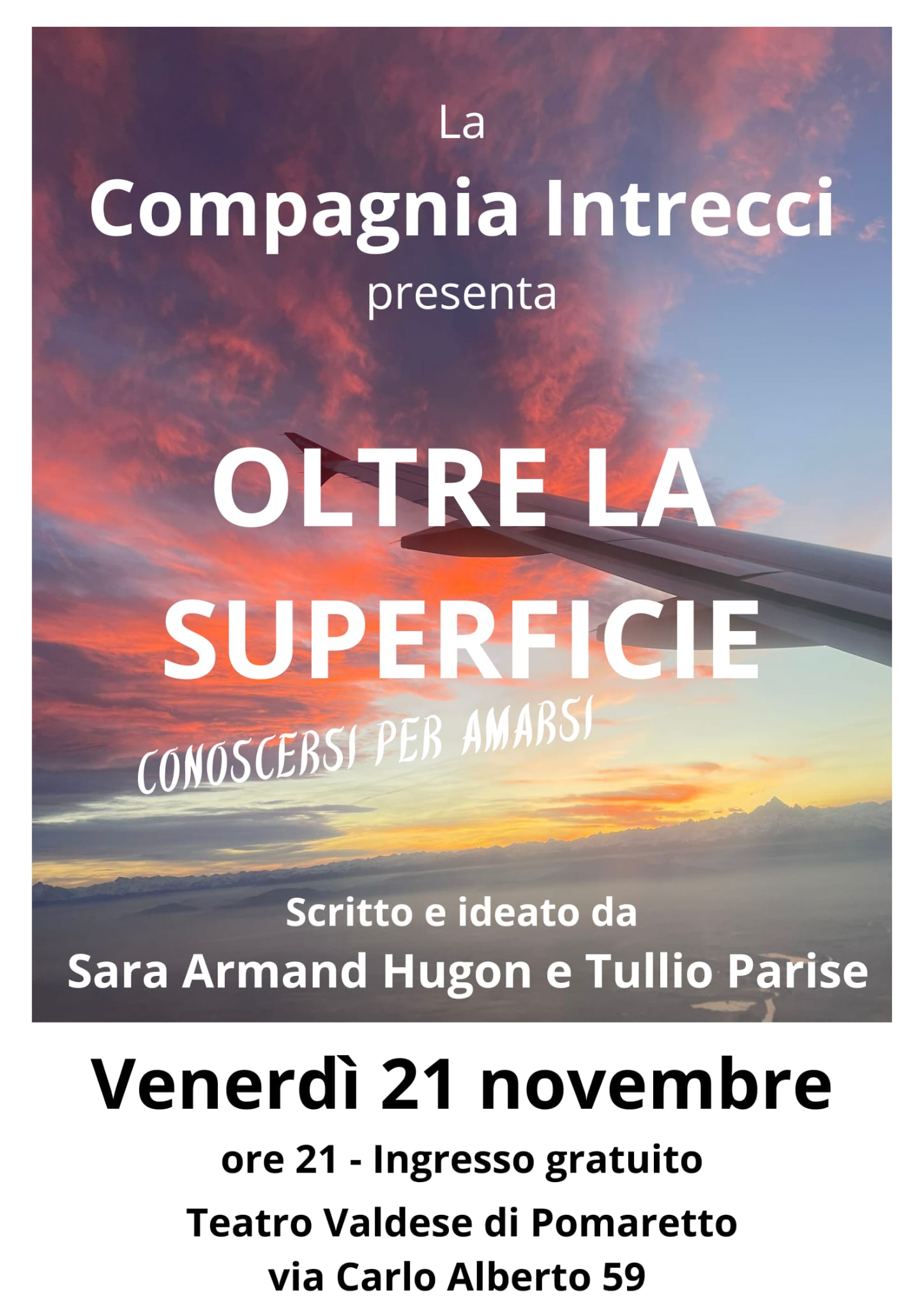 A Pomaretto venerdì 21 novembre ore 21:00 presso il teatro valdese andrà in scena lo spettacolo “Oltre la Superficie – Conoscersi per amarsi”, scritto e ideato da Sara Armand Hugon e Tullio Parise.