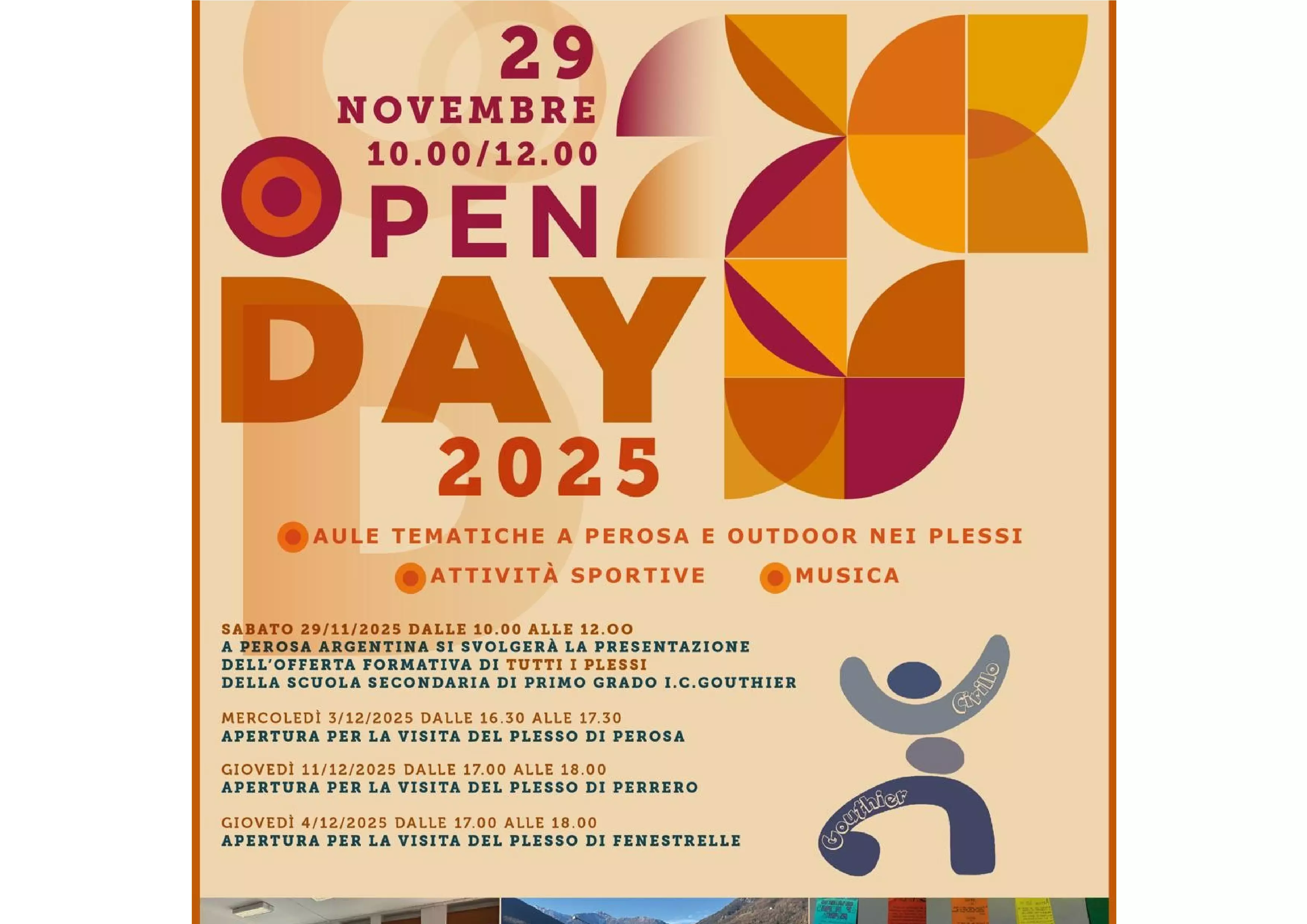 Descrizione Open Day Scuole dell'Infanzia, Scuole Primarie e Scuole Secondarie di Primo Grado dell'Istituto Comprensivo C. Gouthier - A.S. 2026-2027