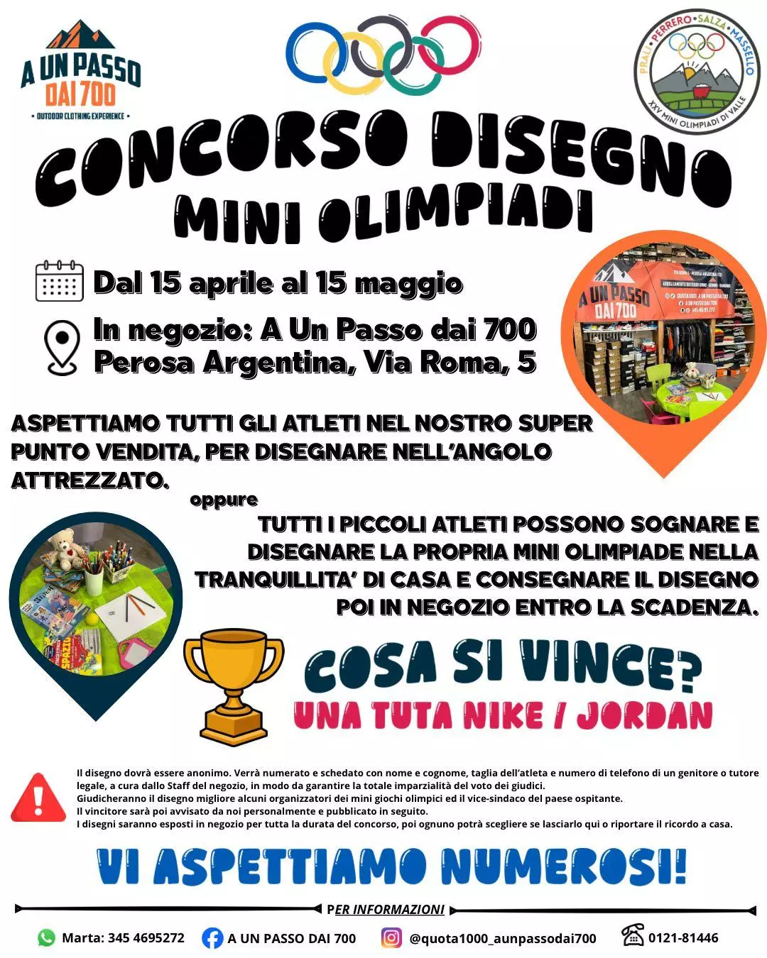 Descrizione Concorso disegno mini olimpiadiDal 15 aprile al al 15 maggioPresso il negozion A un passo dai 700 Perosa Argentina