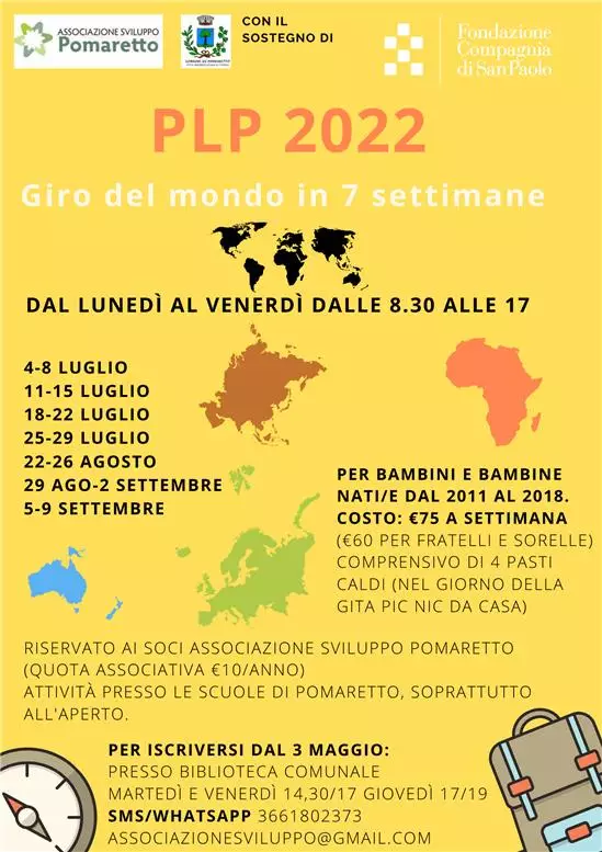 PER ISCRIVERSI DAL 3 MAGGIO: PRESSO BIBLIOTECA COMUNALE MARTEDÌ E VENERDÌ 14,30/17 GIOVEDÌ 17/19
