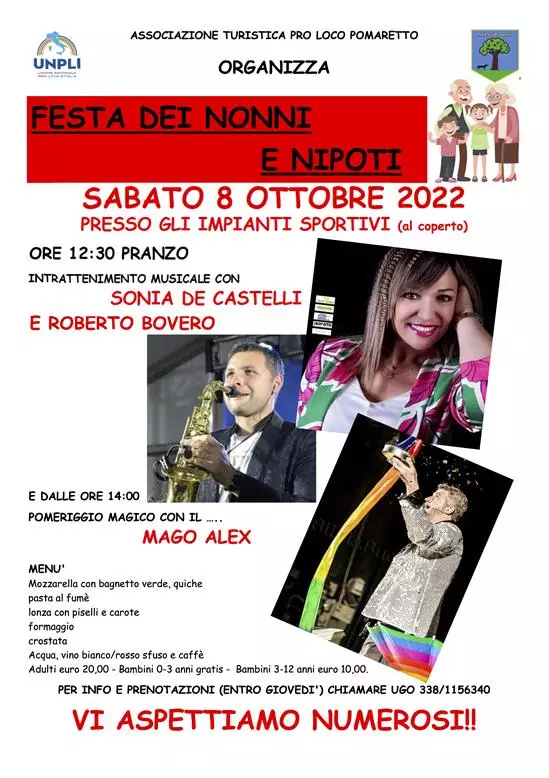 Sabato 8 Ottobre, presso il padiglione degli Impianti Sportivi di Pomaretto, ci sarà una festa speciale per nonni e nipoti !