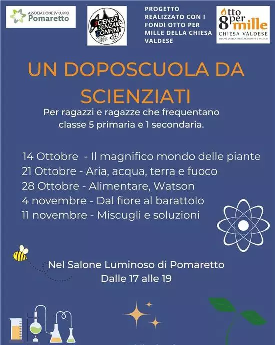 In collaborazione con l'Associazione Sviluppo di Pomaretto, e grazie ai fondi Otto per Mille alla Chiesa Valdese, da Venerdì 14 Ottobre inizierà un ciclo di incontri dedicato ai ragazzi di quinta elementare e di prima media.