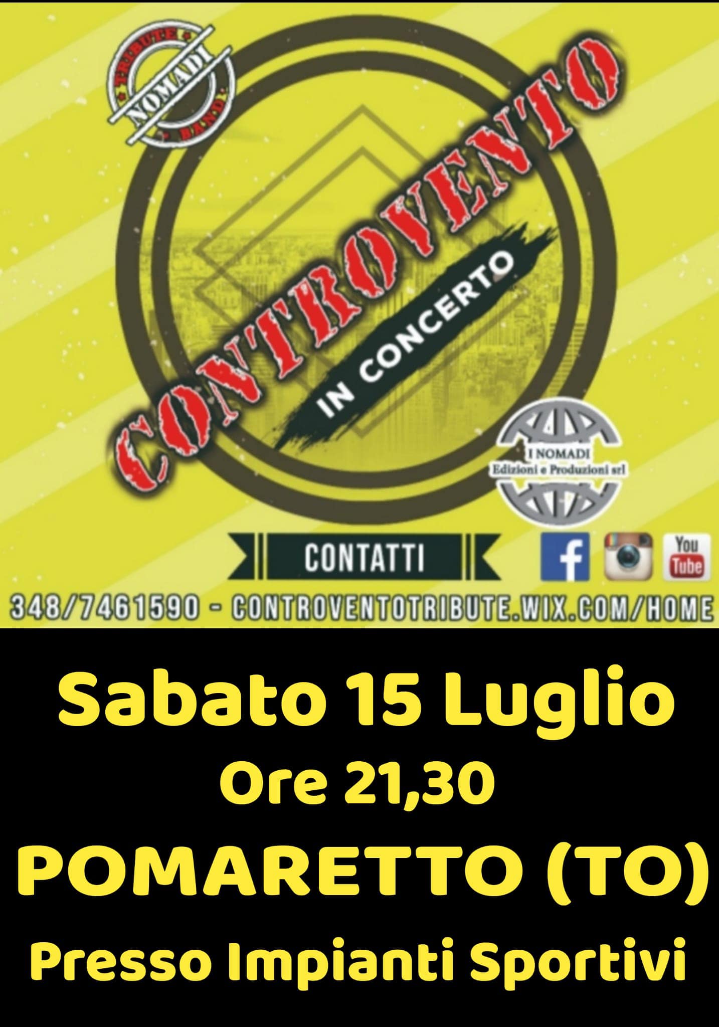 Sabato 15 concerto con CONTROVENTO (Nomadi tribute band) dalle ore 21.30