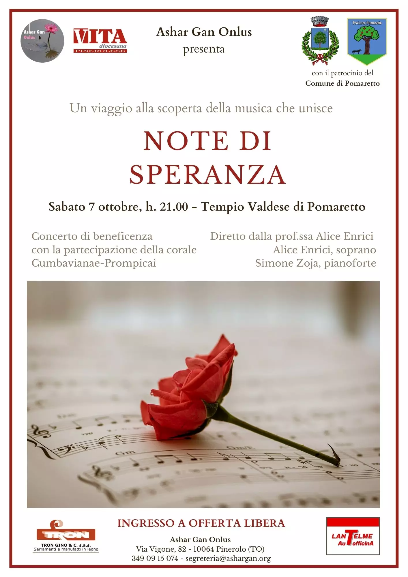 ASHAR GAN ONLUS PRESENTA UN CONCERTO DI BENEFICENZA sabato 7 ottobre alle ore 21.00 presso il Tempio Valdese di Pomaretto.