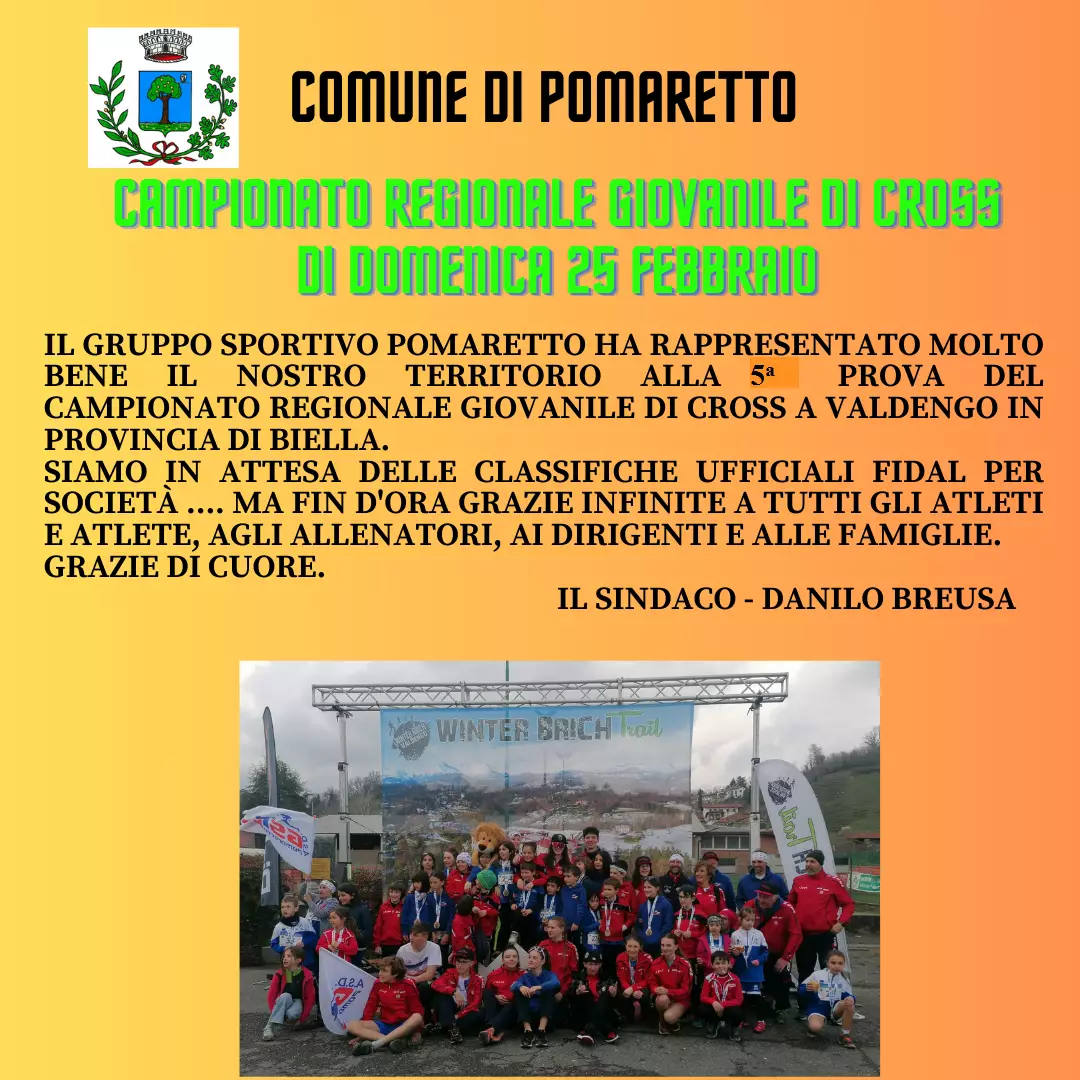 Il gruppo sportivo Pomaretto ha rappresentato molto bene il nostro territorio alla 5a prova del campionato regionale giovanile di cross a Valdengo in Provincia di Biella.