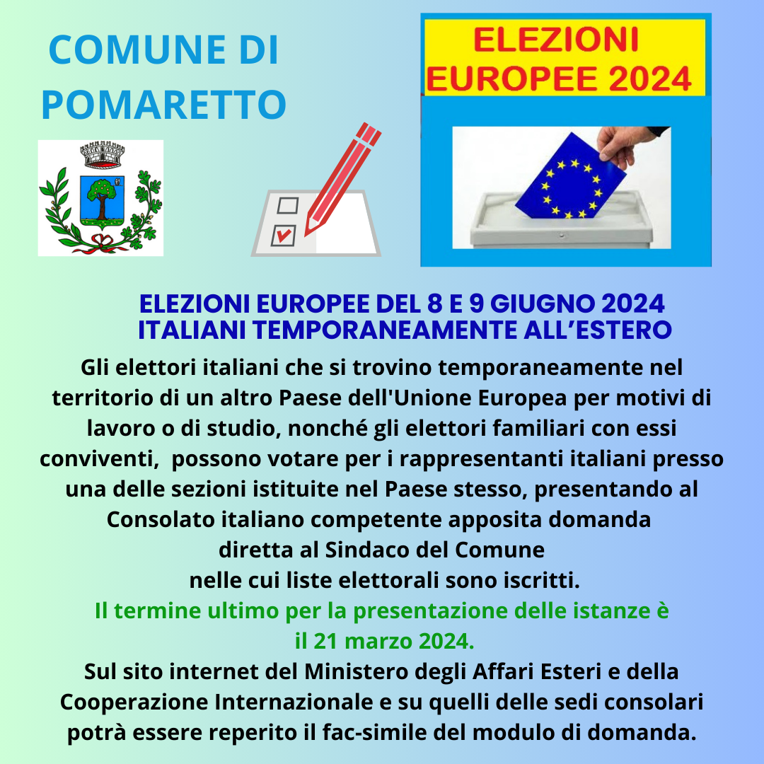 Gli elettori italiani che si trovino temporaneamente nel territorio di un altro Paese dell'Unione Europea per motivi di lavoro o di studio, nonché gli elettori familiari con essi conviventi, possono votare per i rappresentanti italiani presso una delle sezioni istituite nel Paese stesso, presentando al Consolato italiano competente apposita domanda diretta al Sindaco del Comune nelle cui liste elettorali sono iscritti.